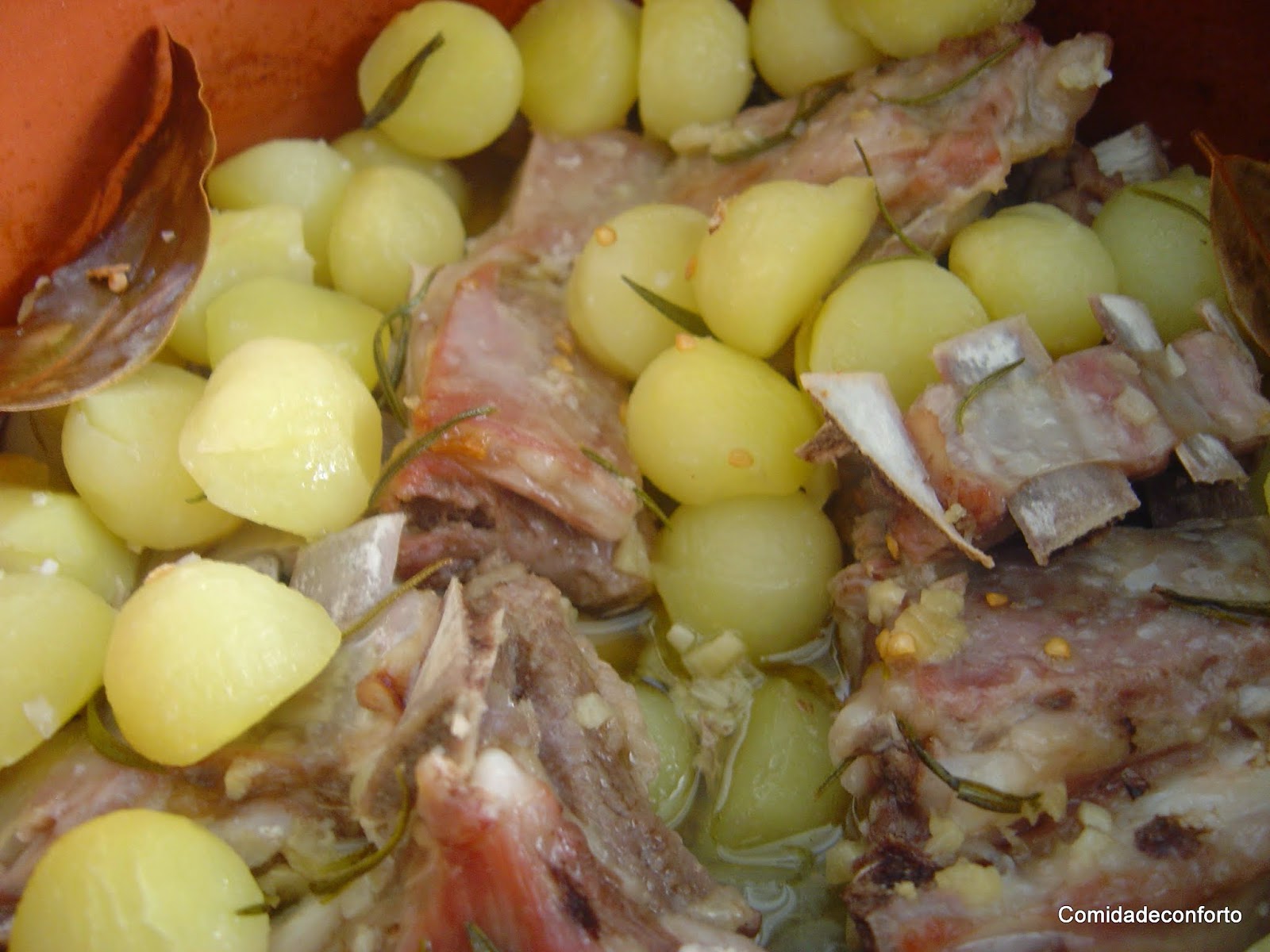 O P assou umas costelinhas de borrego no tacho de barro, que estavam simplesmente divinas!!
