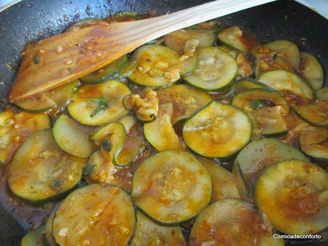 Deixar apurar, tendo o cuidado de não deixar a courgette cozer demais.